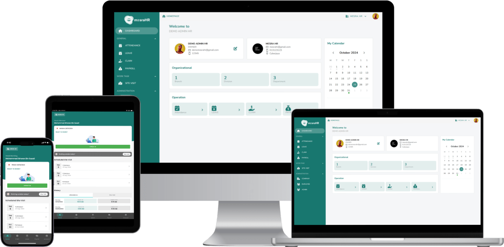 mesraHR was designed to consolidate various HR functions—such as site visit tracking, data management, and device integration—into a single, cohesive platform.
